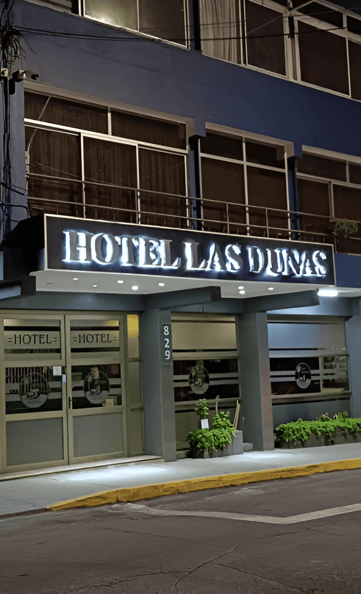 “Somos tu compañero ideal en cada viaje: ya sea de vacaciones, en familia o por negocios, en Hotel Las Dunas siempre encontrarás un lugar cercano, confiable y acogedor."